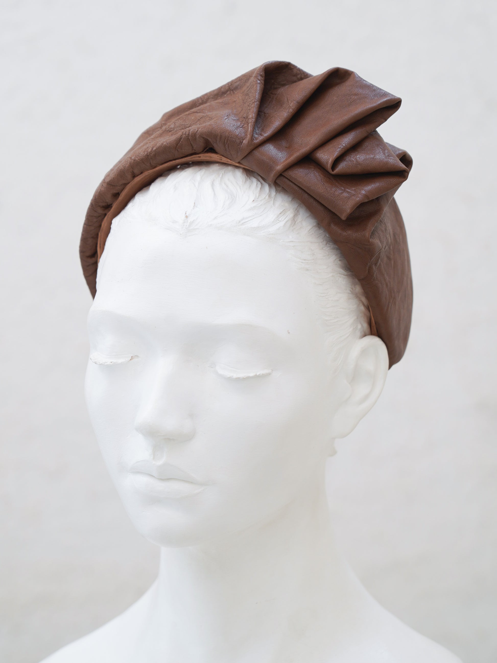 This sculptural headband is handcrafted from premium lambskin—renowned for its buttery softness, elegant drape, and natural warmth. Designed with carefully structured pleats, it adds both texture and volume without overwhelming the face.